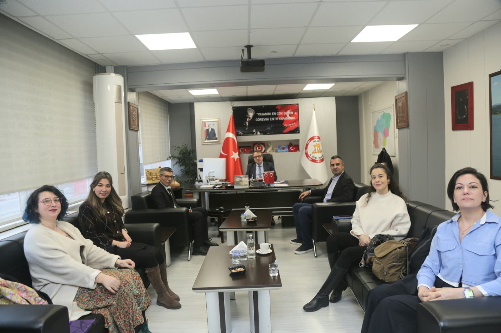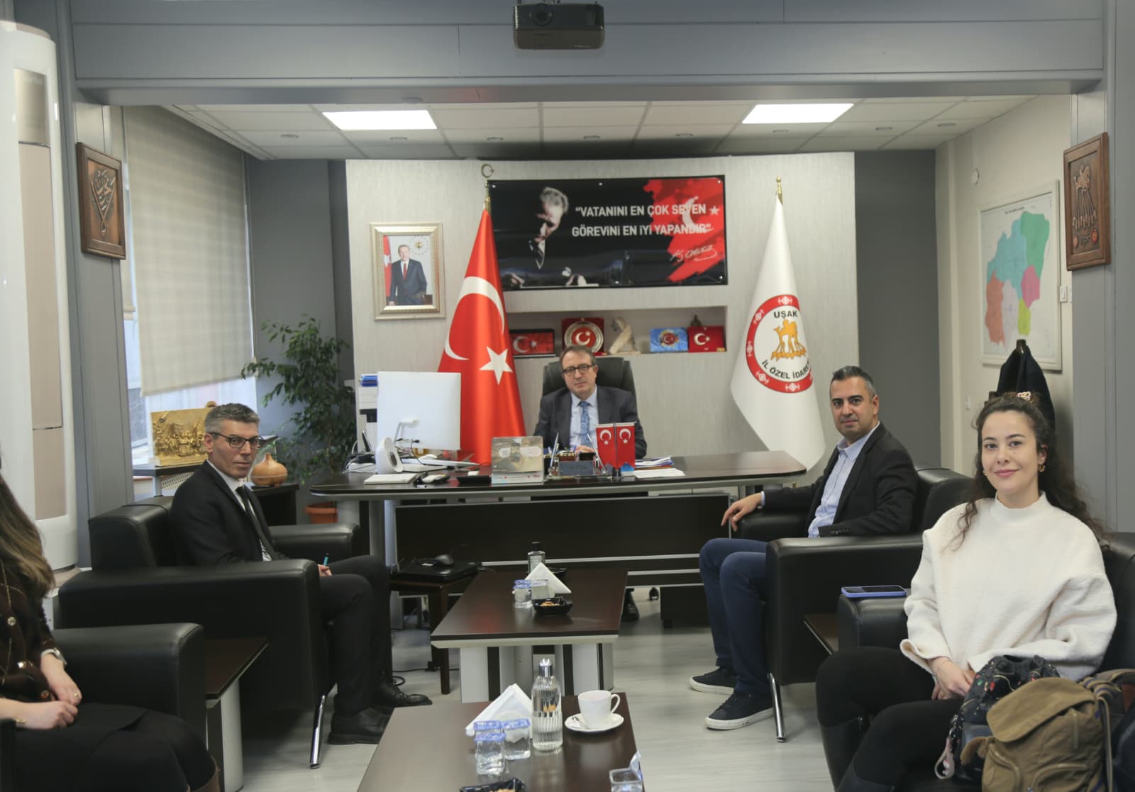 Uşak İl Özel İdaresi icin kurumsal kimlik ve kurum personel kıyafeti tasarım çalışmaları icin Merkezimiz personeli Genel Sekreter Dr. Sabri Ceylan'ı makamında ziyaret etti.